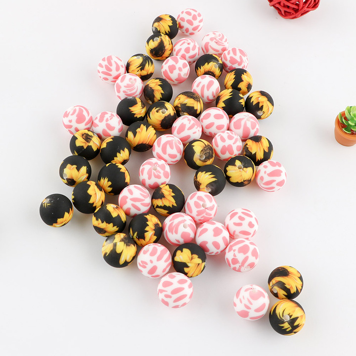 ソフトTeetherシリコーンベビーティーシングビーズジュエリービーズカスタムプリントシリコーンビーズ15mmペン製造用